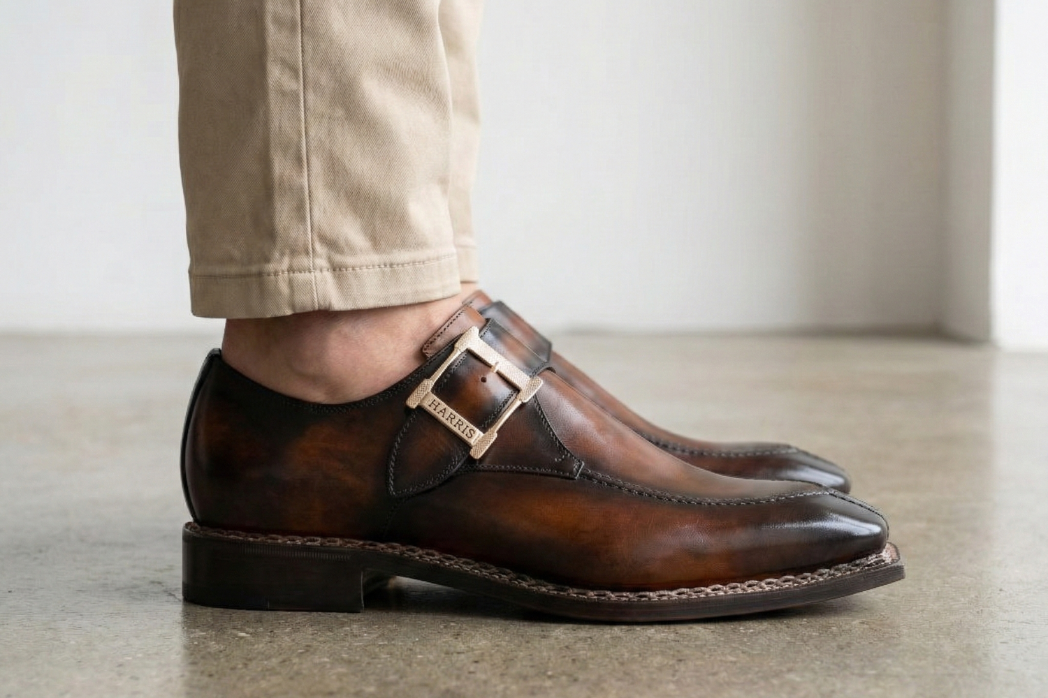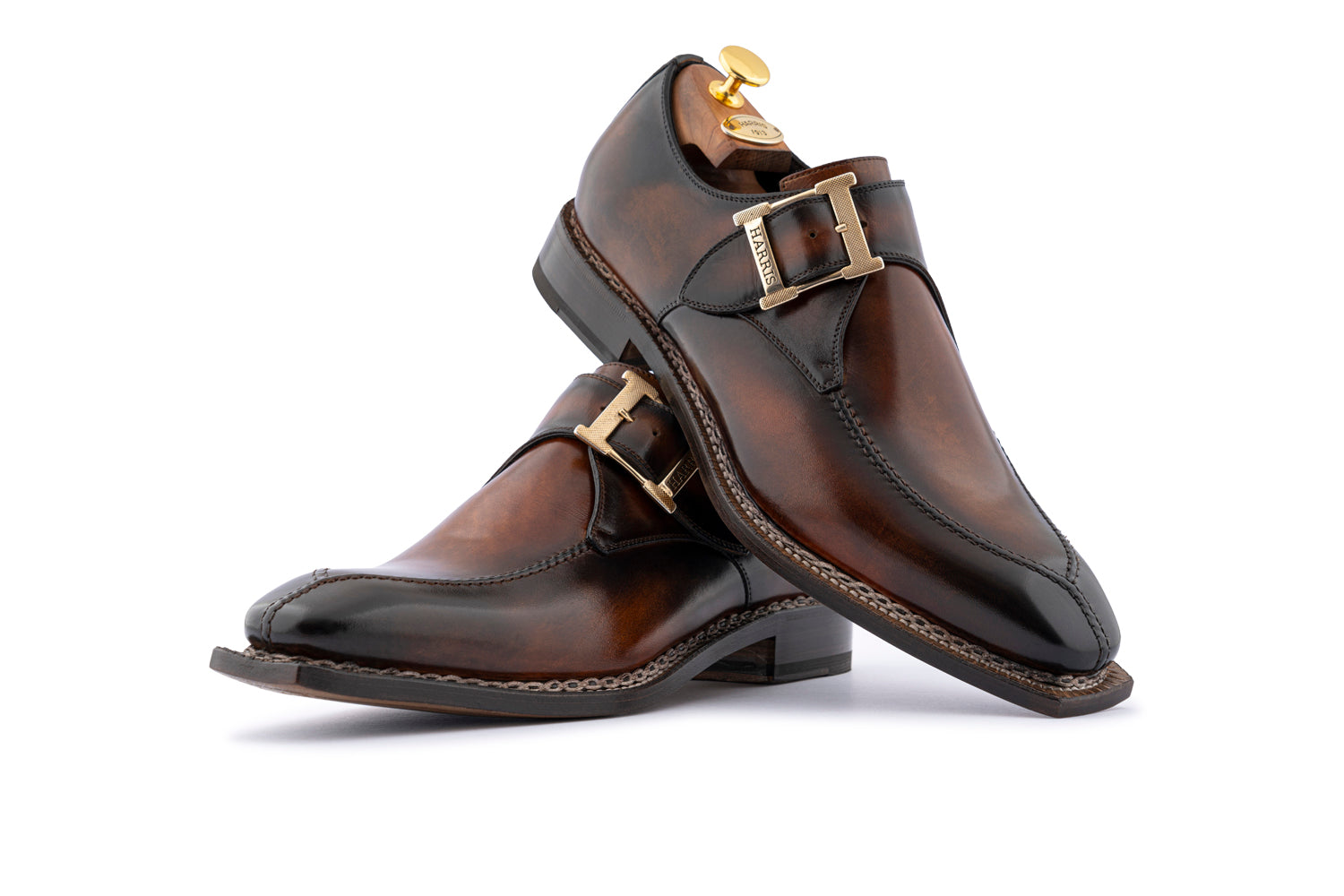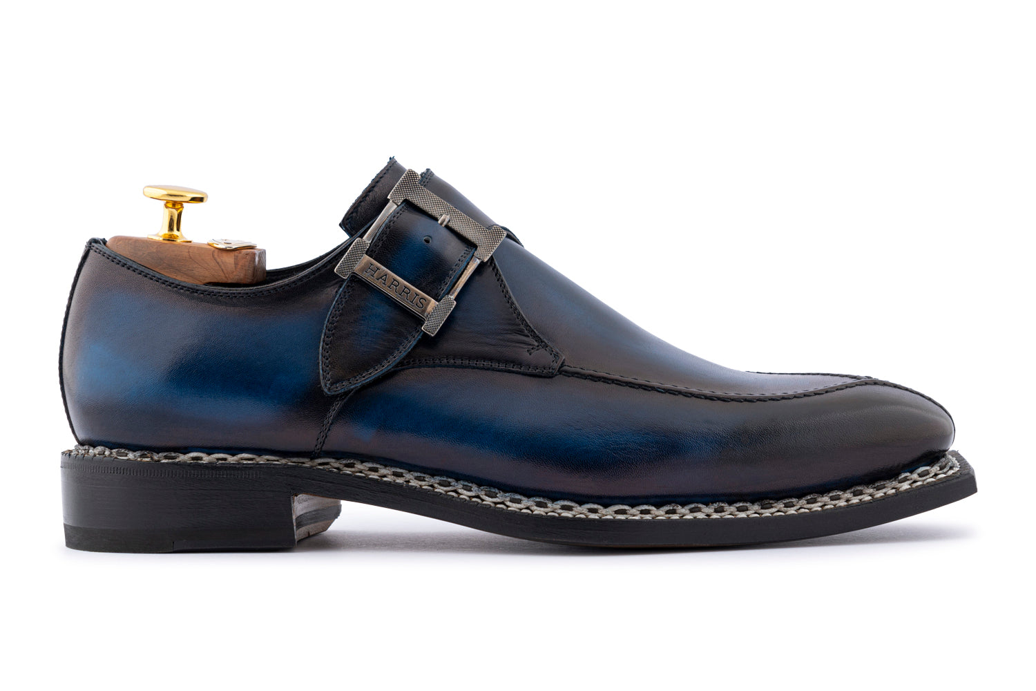 The essence of Harris Shoes is expressed in this full-grain calfskin shoe. The Norwegian workmanship, visible in the typical braided stitching, gives strength and a distinctive character. Each pair is hand painted in dark shades for a timeless look.