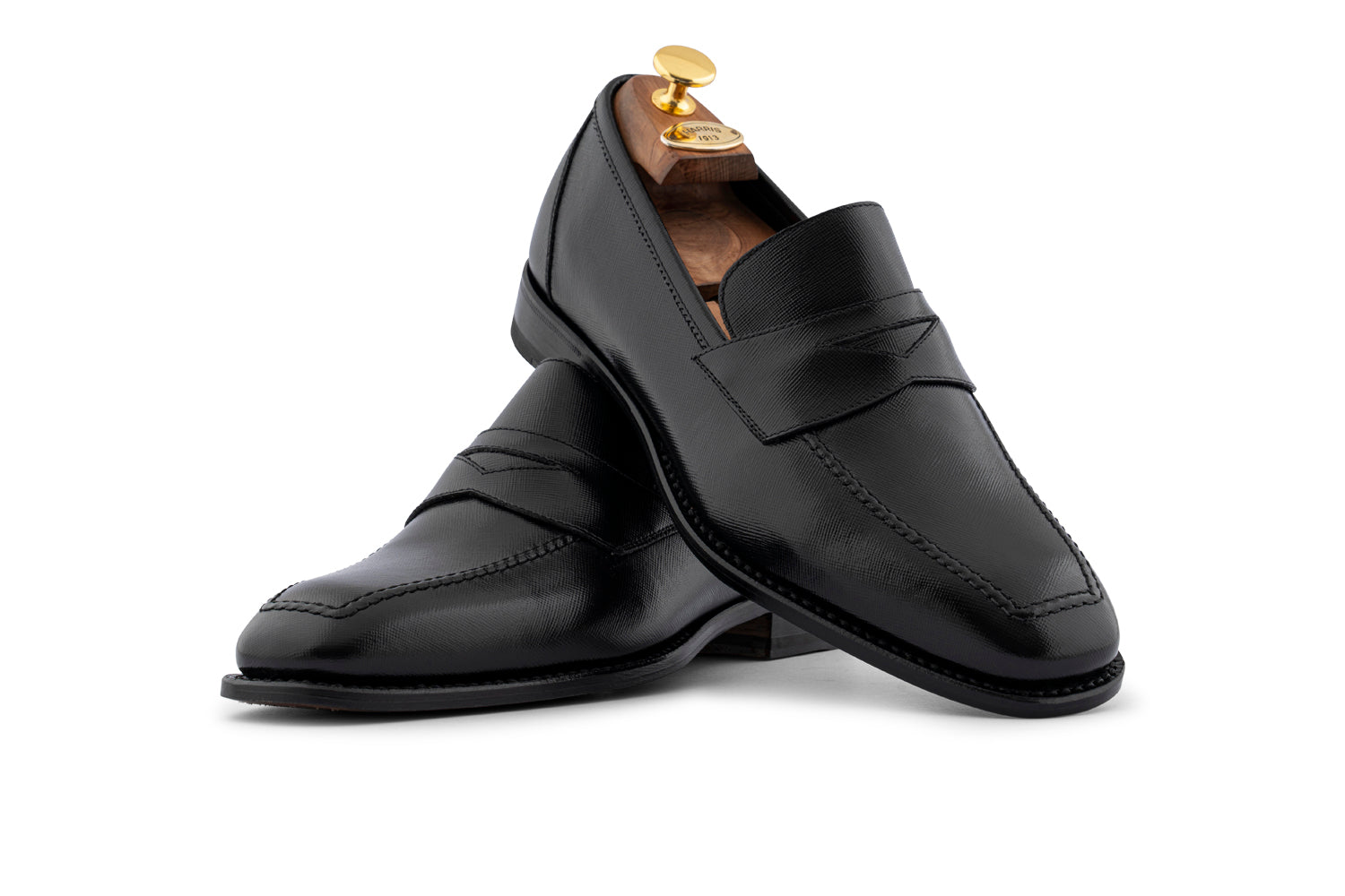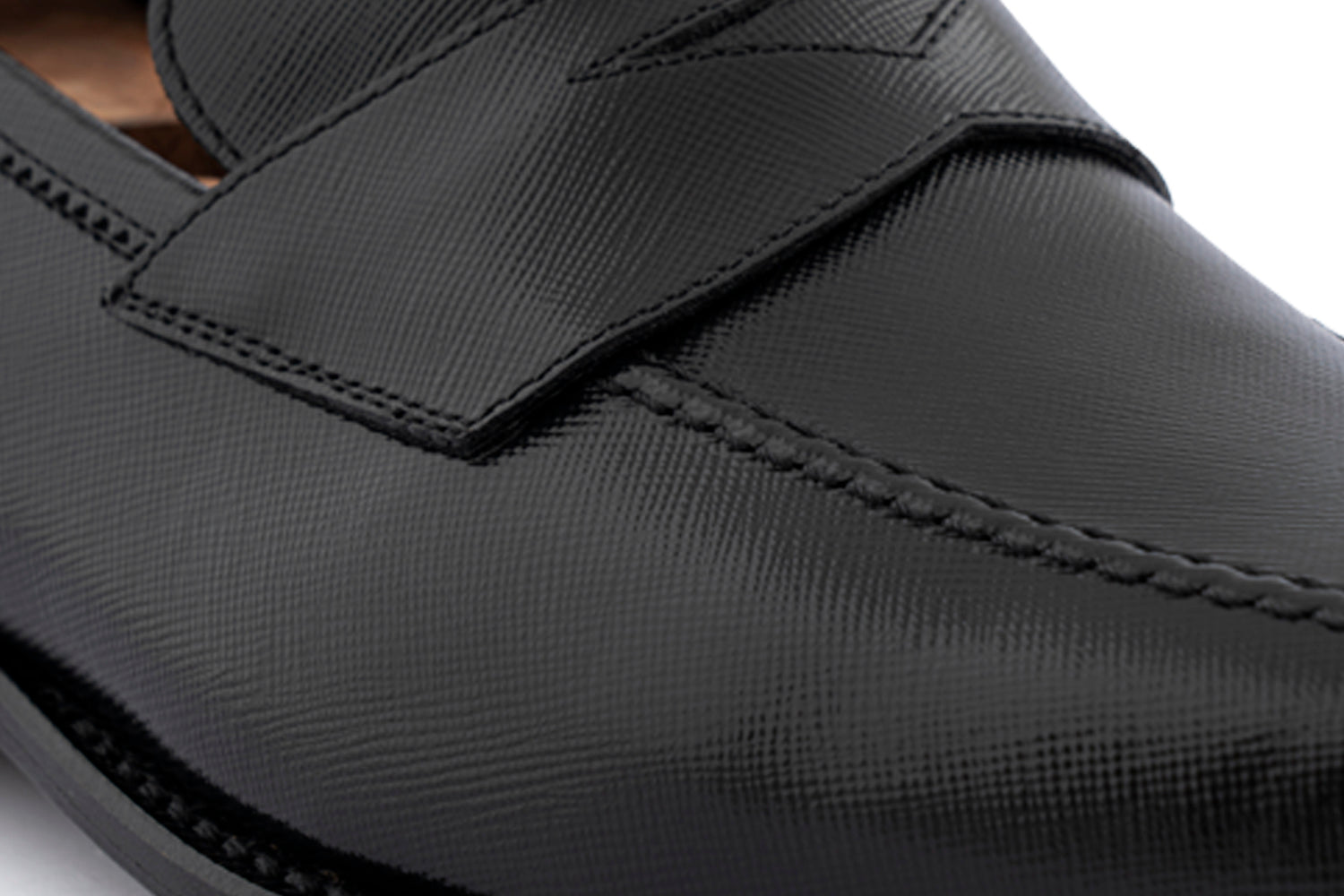 Un clásico atemporal confeccionado en piel estampada Saffiano con trabilla de piel tono sobre tono, presenta suela de cuero con inserción de goma y fabricación Blake Rapid. Elegancia mínima, perfecta para cada ocasión.