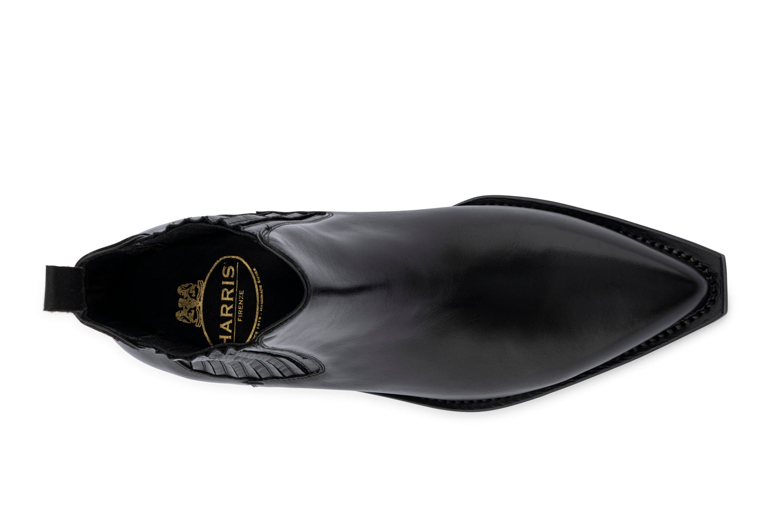 Confeccionado en piel de becerro plena flor, presenta una forma estilizada y una banda elástica lateral forrada en cuero. La suela de cuero con inserción de goma antideslizante y la fabricación Blake Rapid completan un zapato con carácter fuerte y refinada artesanía italiana.