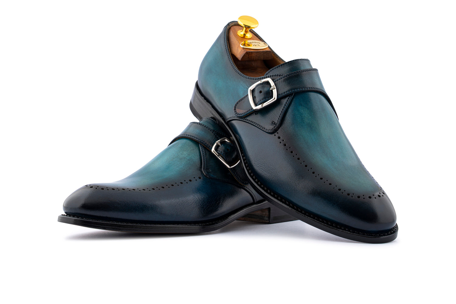 La esencia del lujo clásico: piel lisa de plena flor pintada íntegramente a mano, de color turquesa con la adición de meticulosos detalles brogue que realzan su elegancia. La suela de cuero y la rigurosa elaboración Blake Rapid la convierten en una obra maestra de longevidad y distinción formal.