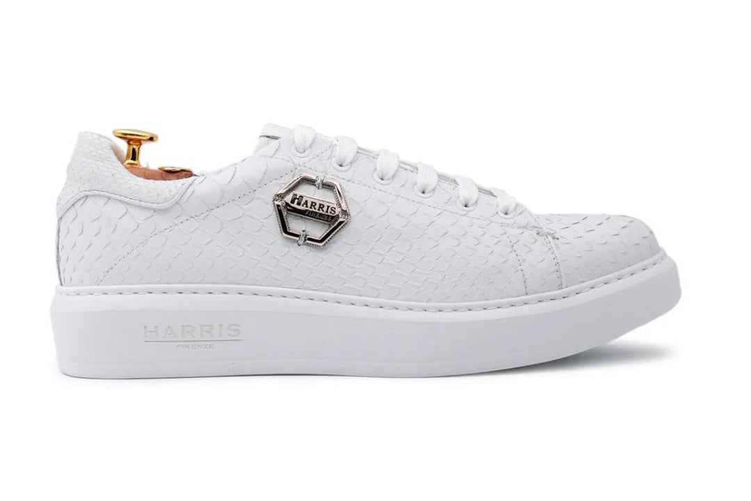 Dallo stile deciso e moderno, questa sneaker Harris è realizzata in morbida pelle di vitello con stampa alce color bianco e arricchita da dettagli in pelle scamosciata blu elettrico. I riporti stampati e gli accessori in nickel conferiscono un tocco esclusivo, mentre la suola a cassetta bianca assicura comfort e versatilità.