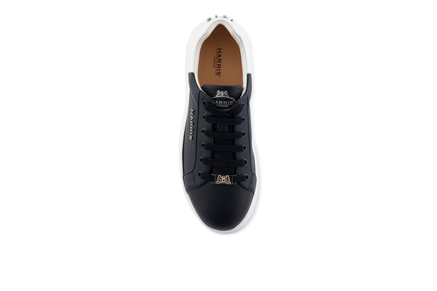 Blu navy con dettagli in vernice bianca. Un design raffinato e deciso, costruito con lavorazione Strobel e suola a cassetta.