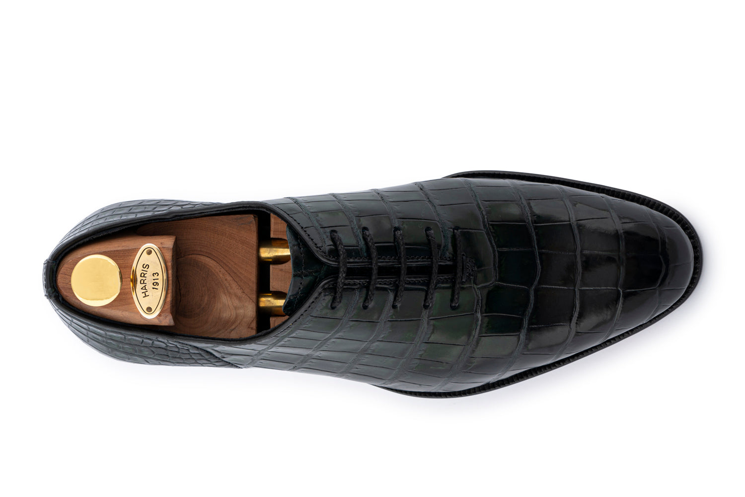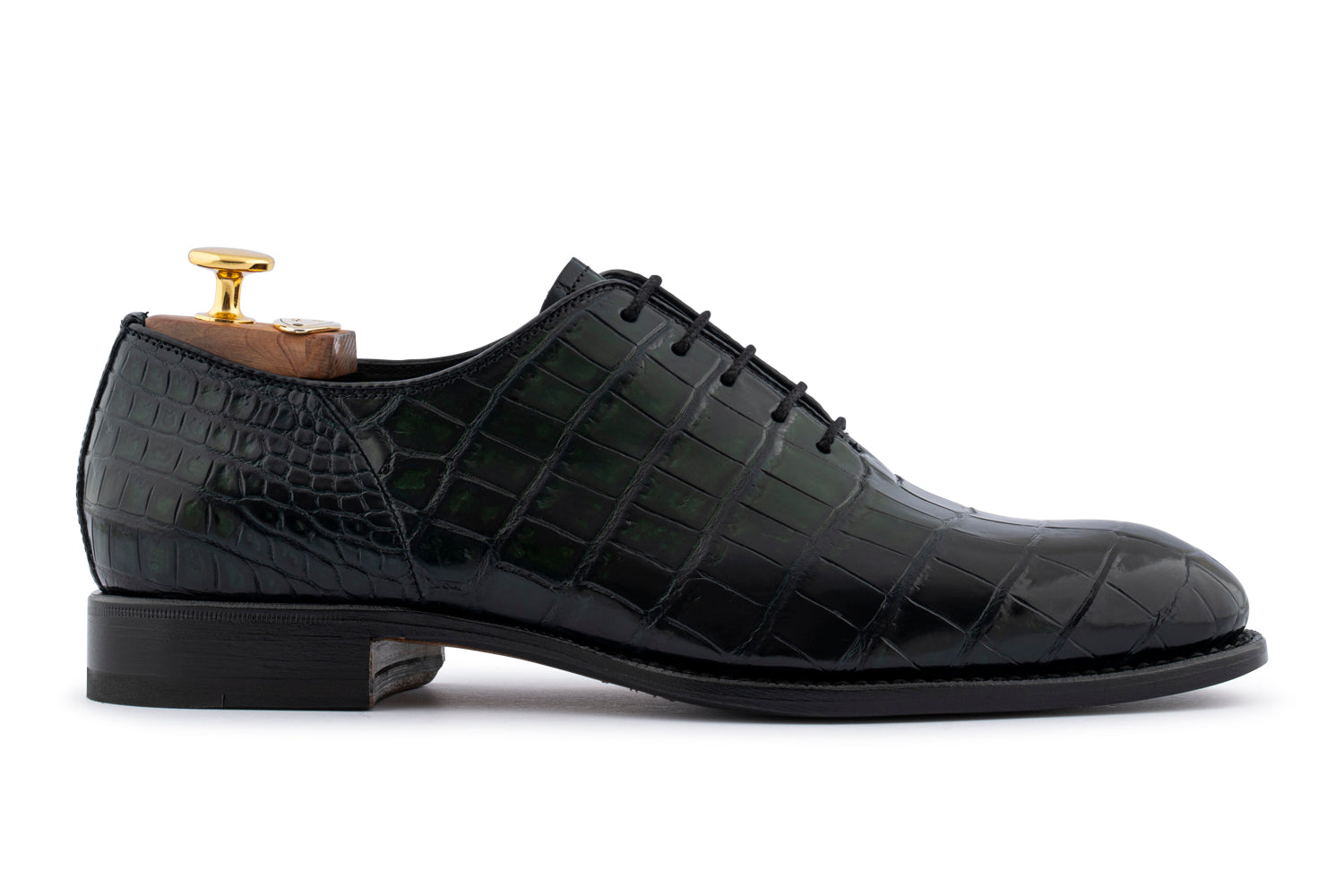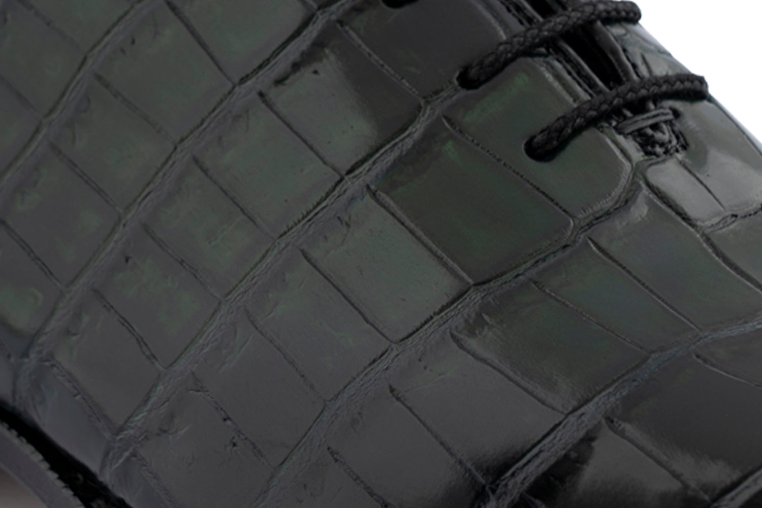 True Hand -gemaltes Krokodil -Lederschuh, smaragdgrüne Farbe, mit schattierten Details, die die eindeutige Textur verbessern. Blake Rapid Processing, Ledersohle mit nicht -Flip -Gummi -Einsatz für maximale Komfort und Stabilität. Ein zeitloser Klassiker, perfekt für diejenigen, die in jedem Detail nach Luxus und Handwerkskunst suchen.