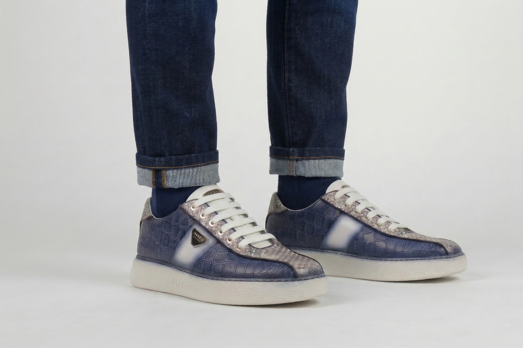 Sneakers mit Krokodil- und echtem Python-Effekt